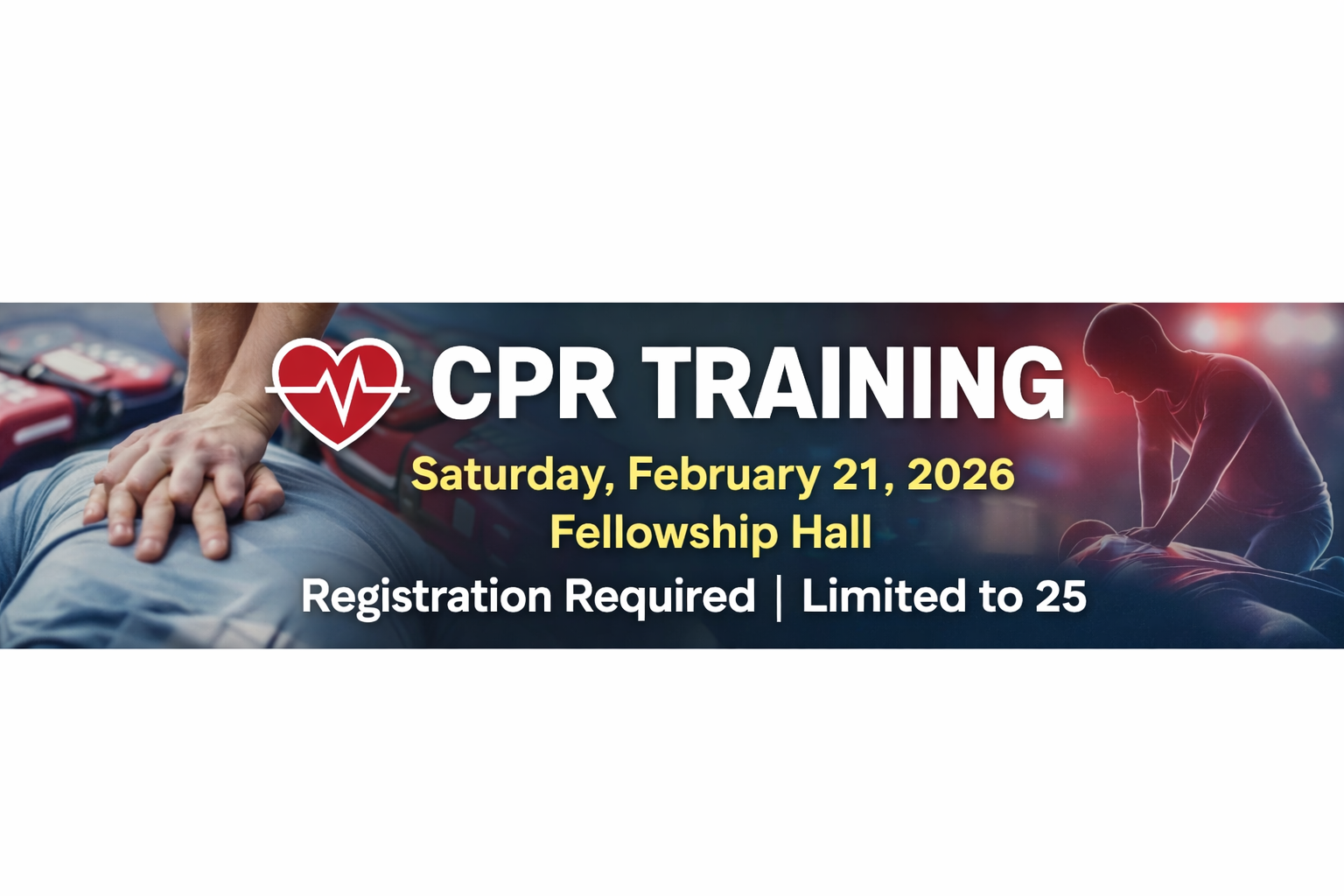 The Health & Wellness Ministry is hosting CPR Training to equip participants with essential, life-saving skills. This hands-on session will provide practical instruction in CPR techniques and emergency response, empowering attendees to act confidently when it matters most.
